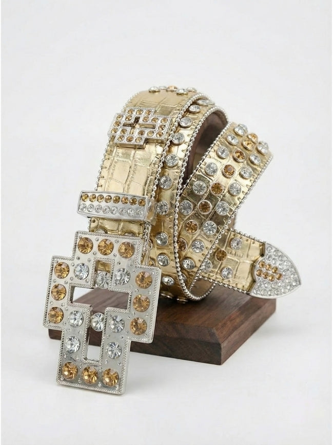 Rhinestone Bold Cross Belt - Studded Design