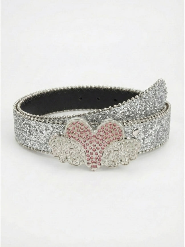 Stylish Glitter Belt with Heart and Wing Detail