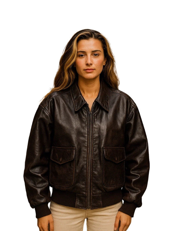 Women's Distressed Oversized 90's Bomber Leather Jacket
